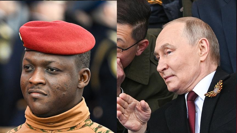 Vladimir Poutine, Président de la Fédération de Russie et le Capitaine Ibrahim, Président la Transition burkinabè.