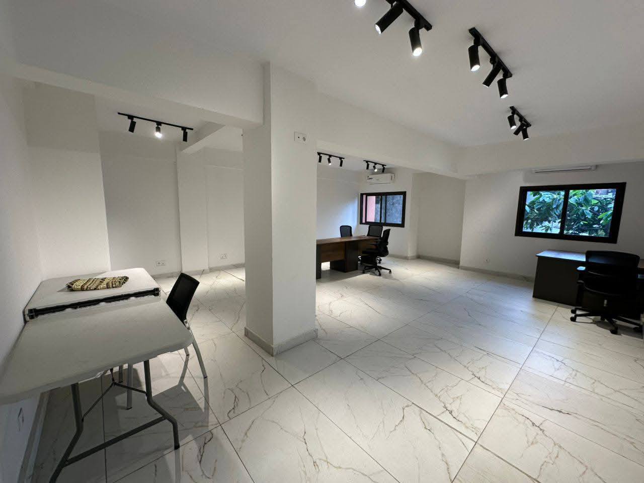 à louer une salle de coworking à cocody riviera palmeraire centre. situé dans un Immeuble à usage de #bureau ou #entreprise uniquement. nouvelle construction. dans un bâtiment choco et sécurisé. au 1er étage. avec douches wc à l'intérieur. avec :